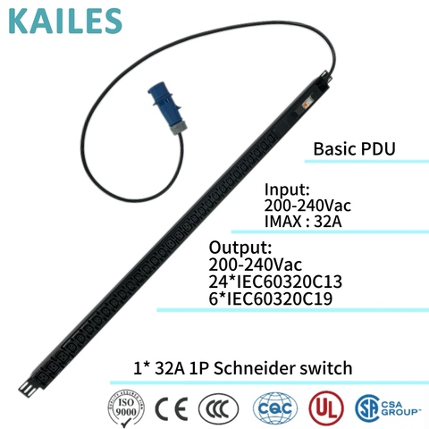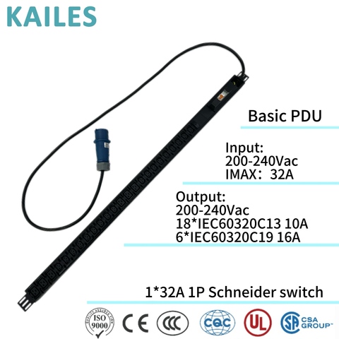 KAILES(KLS) K22 시리즈 기본 PDU 200-240V 32A 16C13+4C19+핫 스와퍼블 번개 보호 및 1P 슈나이더 스위치 일반 PDU